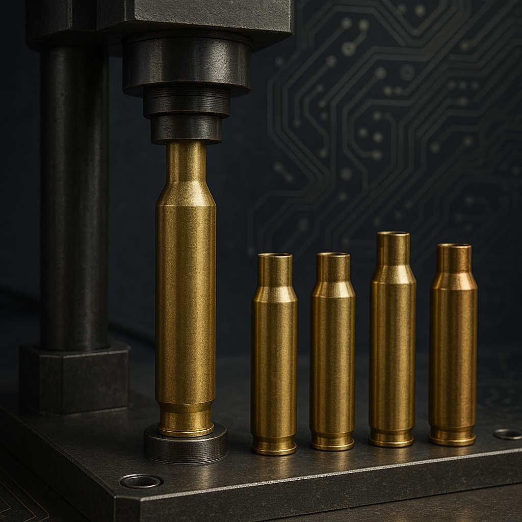 Jsme společnost zabývající se vývojem a optimalizací strojních technologií pro výrobu nábojnic a v oblasti lisování na principu aktuátoru.